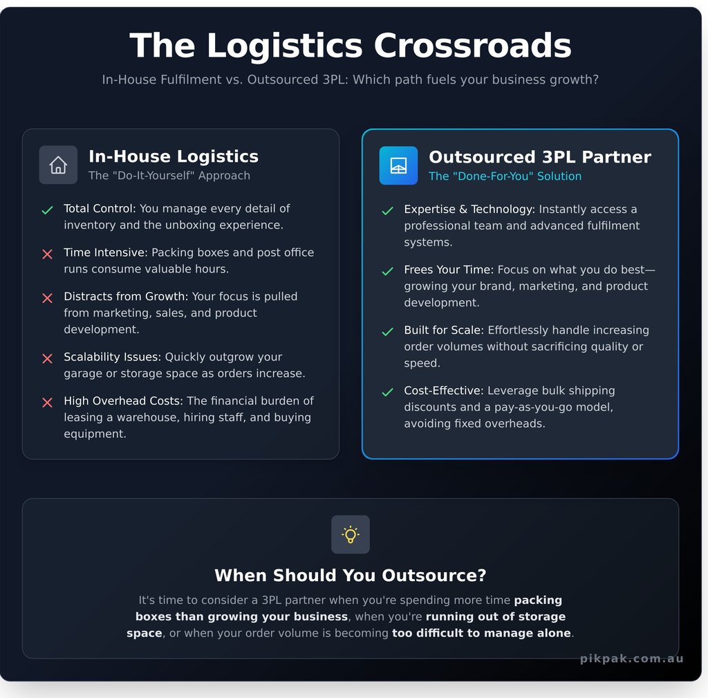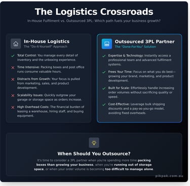 Every growing eCommerce business eventually faces a critical decision: should you continue to manage logistics yourself, or is it time to outsource? The right choice depends on your order volume, resources, and long-term goals.